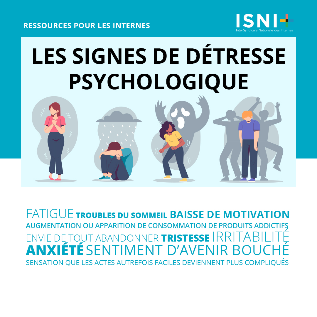 Si un de ces signes d’alerte est présent chez vous ou un co-interne, la première chose à faire est de solliciter de l’aide pour ne pas rester seul(e) :un proche, responsable de stage, médecin traitant, médecin du travail, psychologue, psychiatre, syndicat local, ISNI, organismes spécialisés dans les risques psycho-sociaux, etc. Il existe toujours une solution.